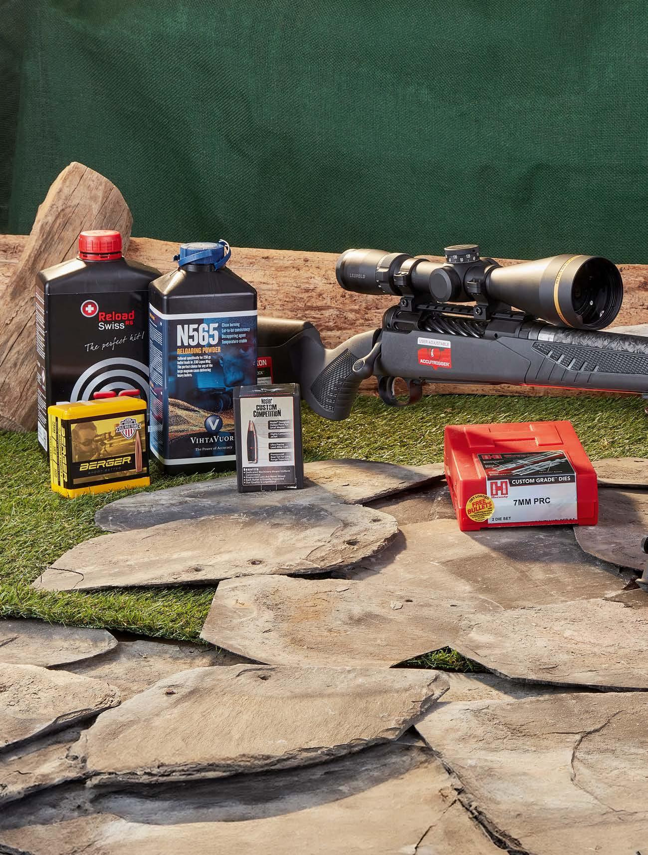 rung von Hornady, Norma offeriert eine Jagdlaborierung. Um sich das Leistungs- und Präzisionspotential des neuen PRC-Kalibers etwas genauer anzuschauen, bestellte die Redaktion VISIER bei der Helmut Hofmann GmbH und der Outdoor Marketing International GmbH eine Savage-Testwaffe, dazu Munition und umfangreiches Wiederladezubehör.