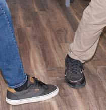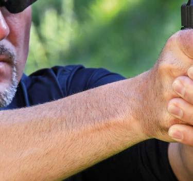 Der eingangs geschilderte Entreißtest geht auf Rogers zurück und ist in vier Richtungen auszuführen – zunächst nach vorn. Lange Zeit dachte man, die meisten Waffen würden Polizisten durch Täter entrissen, die sich von hinten an diese angeschlichen hätten und nach der Waffe greifen. Die meisten Täter stehen dem Polizisten aber frontal gegenüber, um dann nach seiner Waffe greifen. Weitere Tests folgen mit Zugrichtung zur Seite, nach oben und nach hinten. Der „Täter “ zieht dabei nicht nur mit voller Kraft, er stößt und rüttelt auch an der Waffe, um die Entreißbewegungen eines echten Kampfes möglichst realitätsnah zu simulieren. Dabei wehrt sich der „ Polizist “ nicht, sondern lehnt sich, um die Zugkräfte weiter zu maximieren, entgegen der Entreißrichtung. Der „Täter “ trägt dabei grif ge Gummihandschuhe, um seine Zugkraft zu maximieren. Das ergibt Sinn, wie Matt, Ent wicklungsleiter bei Safariland, erzählt. Als er einen solchen