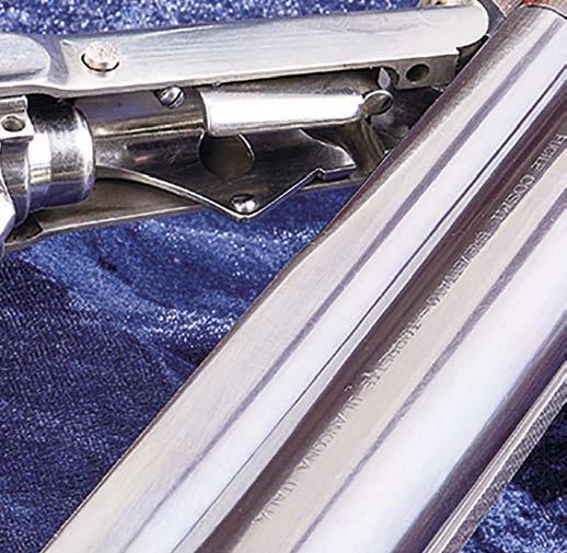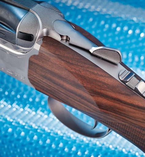 Für Spitzensportler sind sie schöne, vor allem aber leistungsstarke und zuverlässige Arbeits-Tiere: Berettas Sportfl inten DT10 und das Nachfolgemodell DT11 wurden bei den olympischen Spielen 2024 von über 50 Prozent aller Olympioniken verwendet. Mit Erfolg: 14 der insgesamt 15 zu erlangenden Medaillen gingen in Paris an Schützinnen und Schützen mit einer Beretta. Die italienische Waffenschmiede feiert den sportlichen Lorbeer mit dieser Sonderaufl age der DT11. Von der Modellvariante „ Pyramide “ gibt es weltweit nur 414 Exemplare. Ihre Sondergravur mit dreidimensionalem Effekt entsteht mittels Fünfachsen-Lasergravur. HM