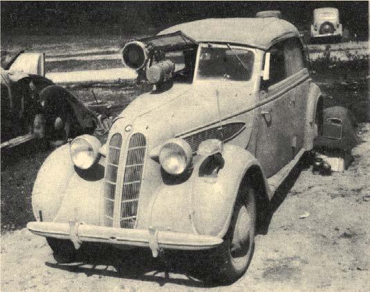 Ein requiriertes Zivilfahrzeug des Typs BMW 321 mit eingebautem FG 1252 für Nachtfahrten.