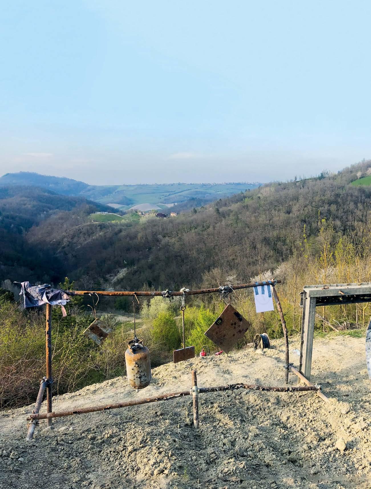 Blick über die Anlage in Cascina Legra, hier von der Rückseite der 800-Meter-Ziele hinüber zur Feuerstellung auf dem Hügel im Hintergrund.