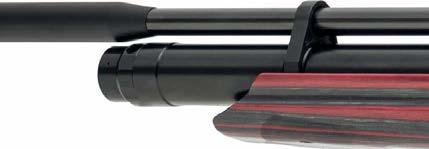 Das Pressluftgewehr HW 100 T aus der limitierten 1899-Serie zum Jubiläum, mit schwarz-rotem Lochschaft und speziellen Aufschriften.