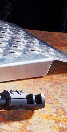 Durchgangsbohrung misst 7,4 Millimeter. Die Prallfl ächenpaare leiten die Verbrennungsgase seitlich ab und reduzieren dadurch den Rückstoßimpuls, welcher angesichts des Waffengewichts und der geringen Geschossmasse von Haus aus schon gering ausfällt.