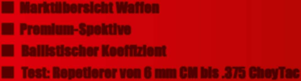 Deutschland einfach so komplett ignoriert wird. Um einmal zu kalauern: Wer weit schießen will, muss erst mal weit weg. Warum das falsch ist und wie sich das ändern ließe, steht im Heft. Apropos Heft. Zwei Aspekte seien noch erwähnt: Zum einen hat die vertrackte Corona-Pandemie das Team von VISIER lange verschont, um in diesem Jahr am Übergang von Winter zum Frühling umso heftiger zuzuschlagen. Mit der Folge, dass einiges verschoben werden musste, so auch der Drucktermin dieser Ausgabe. Zum anderen ist da ein Problem, das eigentlich minimal-banal ist, aber stets für (glauben Sie mir!) höchst lebhafte Debatten sorgt – die Schreibweise von metrischen Kalibern hüben und drüben. Genauer: Es geht darum, ob man ein Leerzeichen zwischen Zahl und Maßeinheit setzt. Also: „6mm Creedmoor“ oder „9mm Luger“ bei den Amerikanern versus „6 mm Creedmoor“ oder „9 mm Luger“ gemäß C.I.P.-Vorgaben und den Schreibweisen der Alten Welt – und hoffentlich so in diesem Heft zu lesen: Viel Spaß!