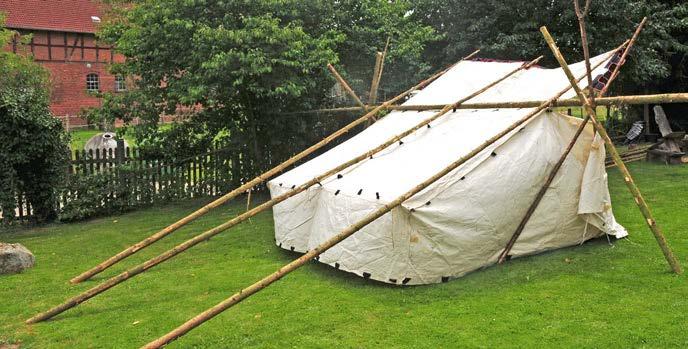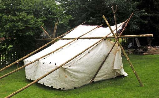 ... oder “Baker’s Tent“, das ist ein Zelttyp, der extra für den Einsatz mit Lagerfeuer gedacht ist. Die Vorderseite kann als zusätzliches Dach aufgeklappt werden und vergrößert bei gemäßigtem Wetter die Fläche. Diese Zeltart lässt sich auf verschiedene Weise aufbauen und nutzen.