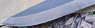 der Stiel bei einer guten Axt eirund ist, kann man ihn nur schlecht führen. Die Balance einer solchen Axt muss daher von sich aus stimmen. Die besondere Form der Klinge ist optimiert, um bei einem schrägen Schlag tief ins Holz einzudringen, den Span anzuheben und aus der Kerbe zu werfen. Dazu ist ein balliger Schliff notwendig, also einer, dessen Querschnitt von beiden Seiten in einem spitzen Bogen hin zur Schneide verläuft. Mit dem günstig herzustellenden und bei vielen modernen Äxten Foto: Carsten Bothe