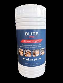 BLITE PRO Power Wipes er kraftige rengøringswipes udviklet til hurtig og effektiv rengøring af hænder, værktøj og overflader.