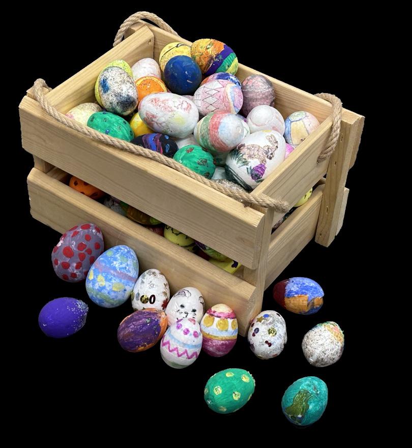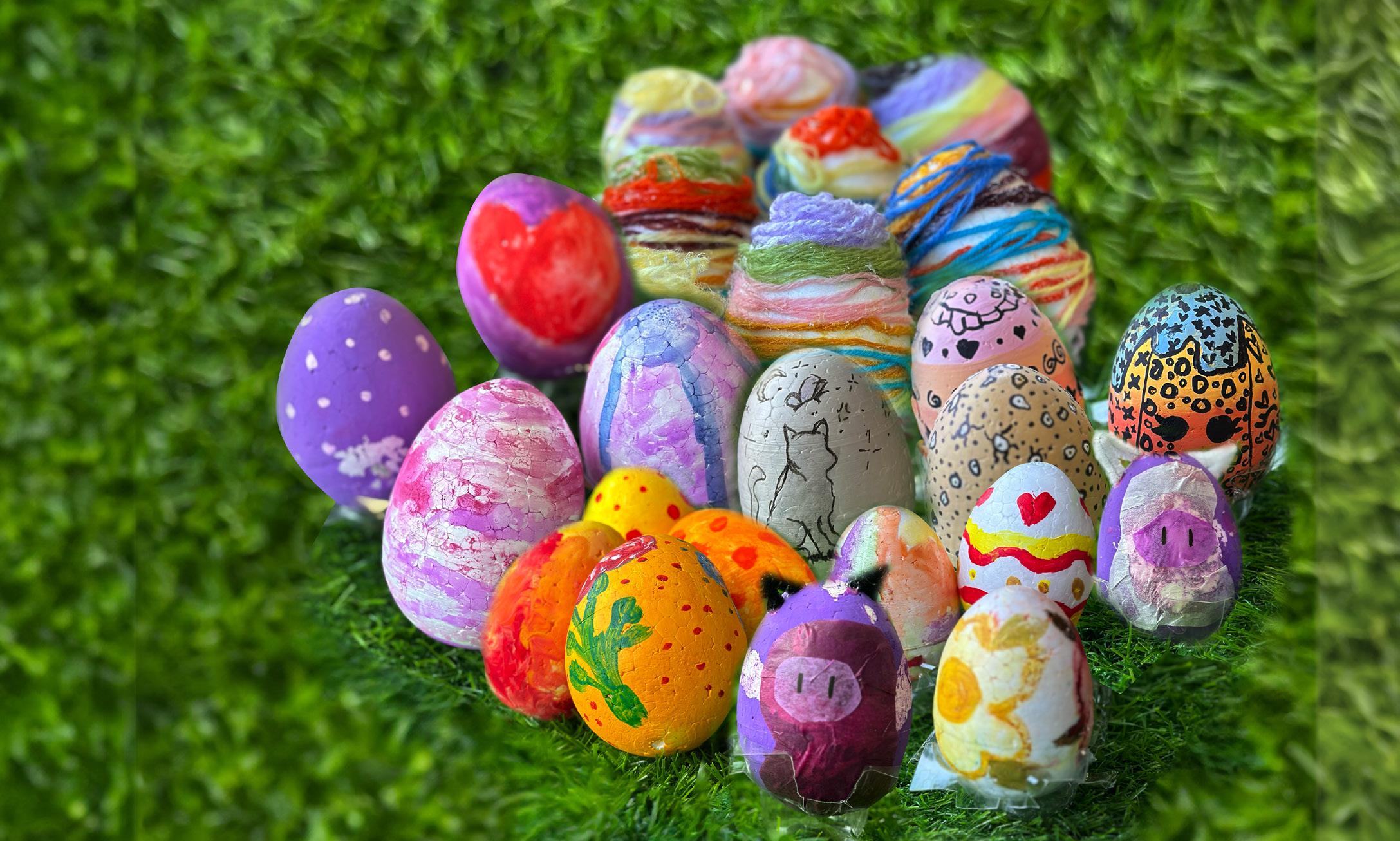 Kevään 2026 paras sato on kypsynyt. Lasten maalaamat ja koristelemat sadat pääsiäismunat ovat ihasteltavissa AsuntoSataman (Solvikinkatu 9) näyteikkunoissa pääsiäispyhinä.