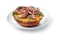 Een smaakvolle portobello gevuld met cheddarkaas, gekruide biefstukreepjes en rode-uienringetjes. Bereid deze variant van de kastanjechampignon 10 tot 12 minuten in een voorverwarmde oven van 180 graden. Onze menusuggestie: heerlijk met rucola en spaghetti.