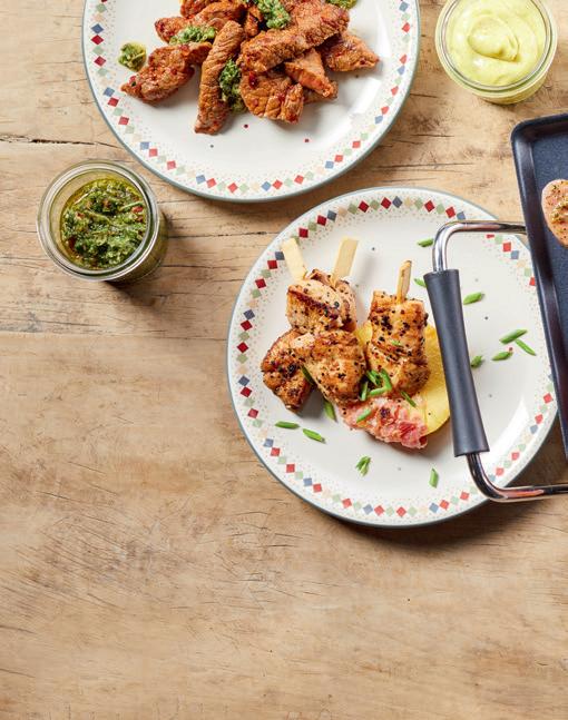 runderrollade of een rollade van lams bout. Die rollades smaken bij de juiste kerntemperatuur heerlijk. Ik adviseer sowieso altijd gebruik te maken van een vleeskernthermometer om exact te weten of de rollade gaar is.” (zie ook de tabel op pagina 31).