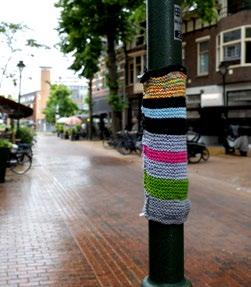 lantaarnpalen en soms een boompje ‘aankleedt’ met een kleurig ‘jasje’: een gebreid of gehaakt bandje van zo’n 25 á 30 cm breed, op ooghoogte. ik hoop steeds meer... leuk, vrolijk!”