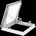 ** Decentraal geplaatste actuator, wat toelaat deze koepel ook als daktoegang te gebruiken. Deze optie wordt standaard geleverd met een sleutelschakelaar (opbouw) ten behoeve van de veiligheid, waarbij we verwijzen naar bediening conform machinerichtlijn 2006/42/EC.