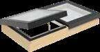 • Daktoegang in glas Zonneschermen en gordijnen voor platdakvensters met vlak en gebogen glas