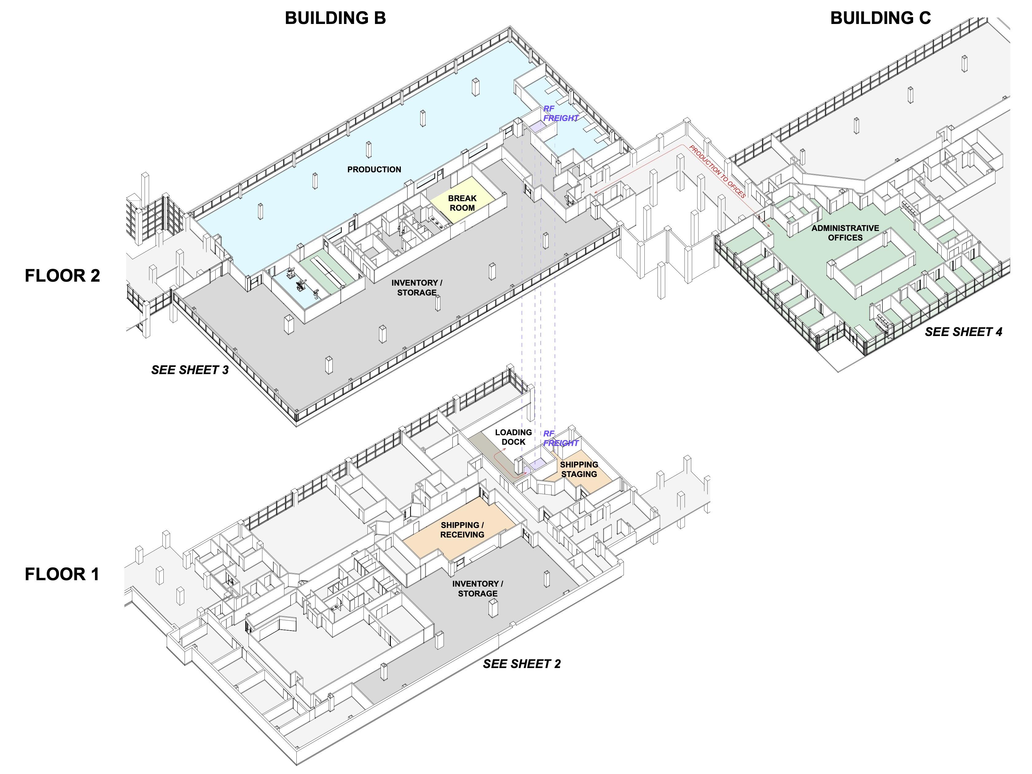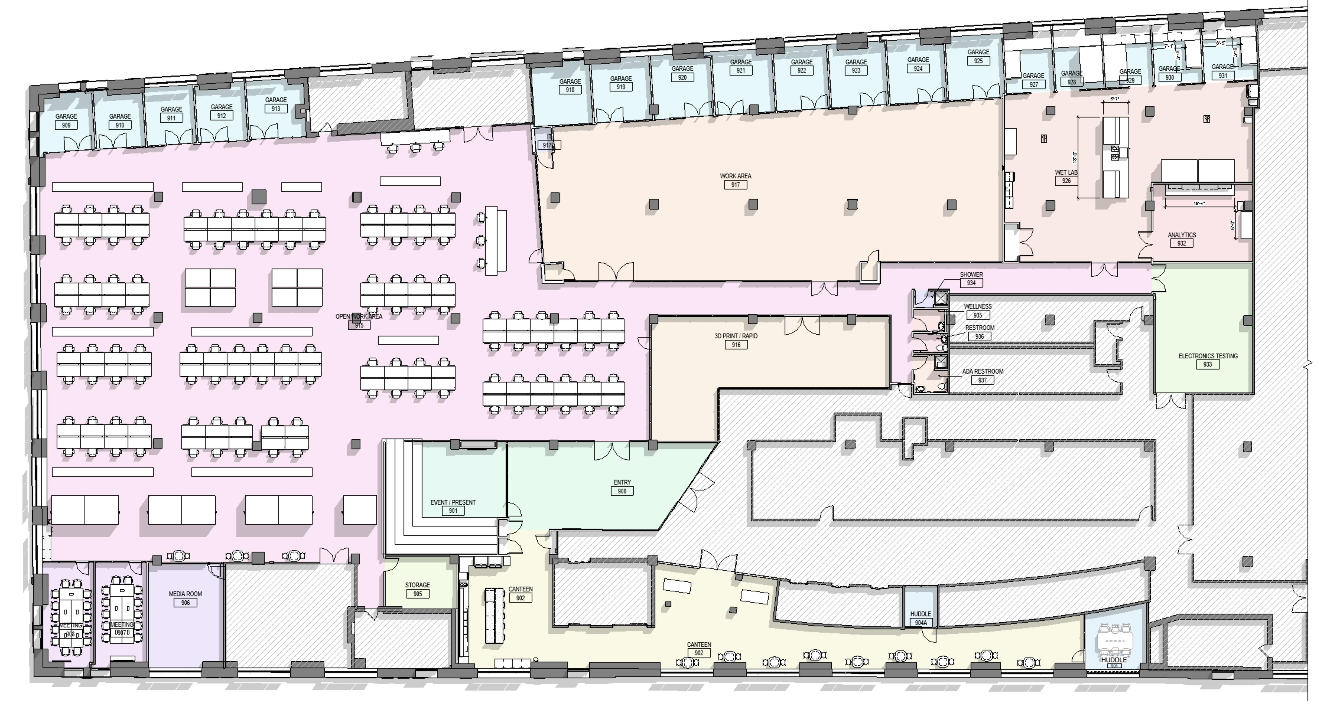 Complex programs fit into commercial office buildings include academic, industrial, manufacturing, and medical office uses. In some cases, these uses have been fit into existing buildings alongside other existing office functions, requiring careful consideration of the impacts of new operations on existing users.