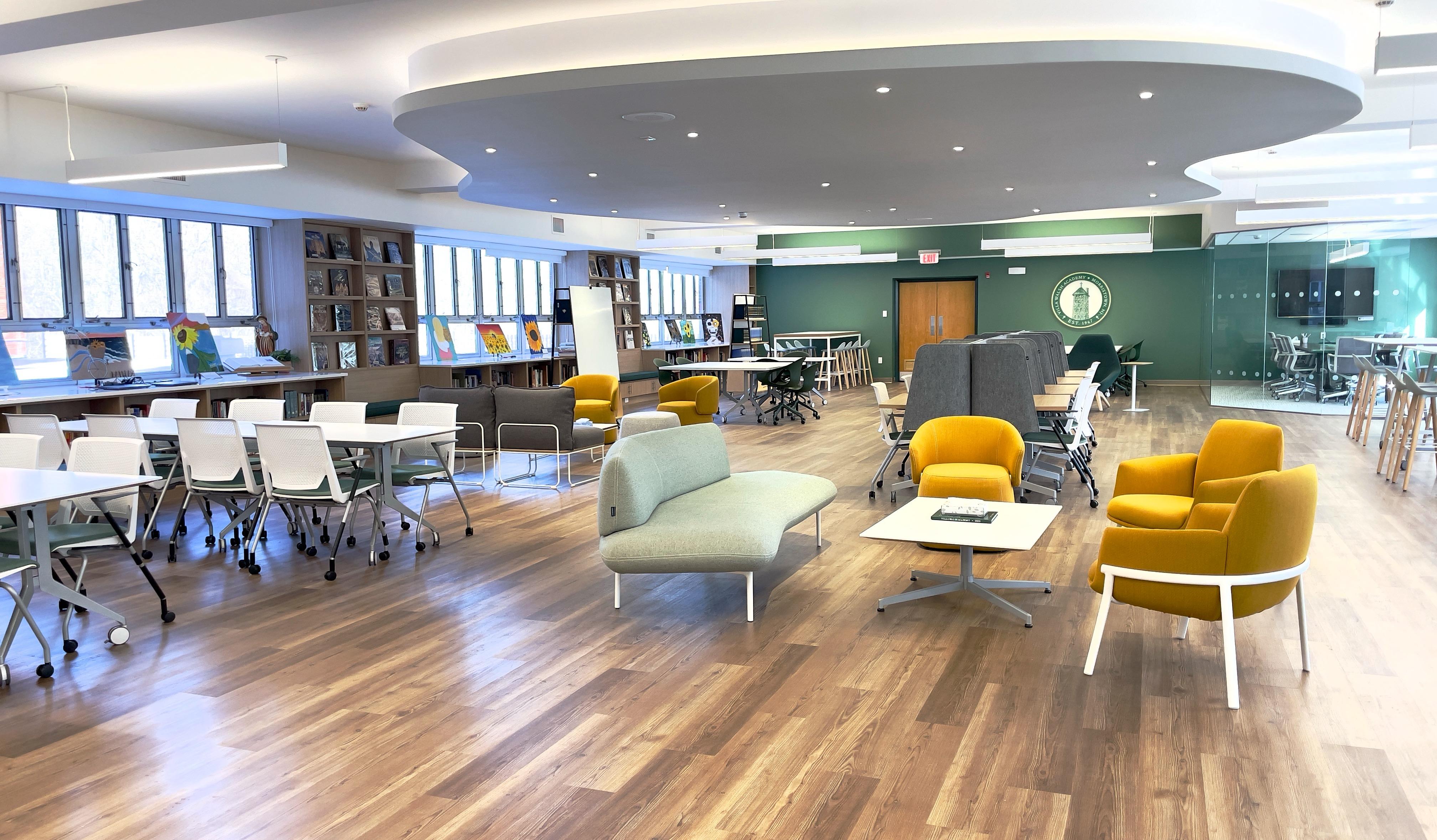 • Today’s library is a space where students can collaborate around digital media, and where varying study accommodated (high top seating, soft seating, presentation spaces, and huddle rooms).