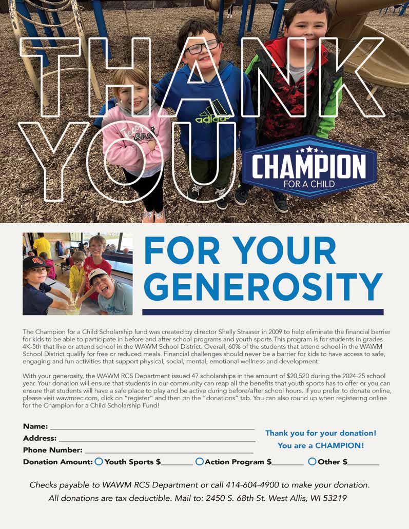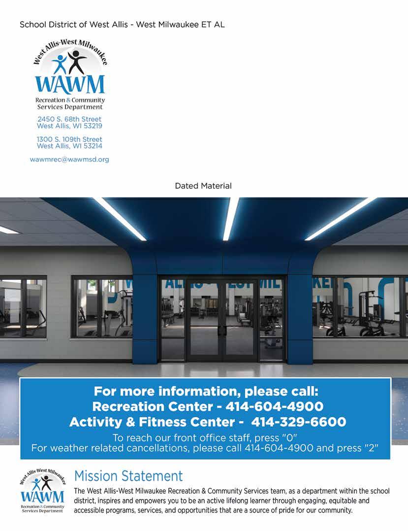 Activity & Fitness Center: 1300 S. 109th St., West Allis, WI 53214 | 414-329-6600* wawmrec.com | *effective December 1