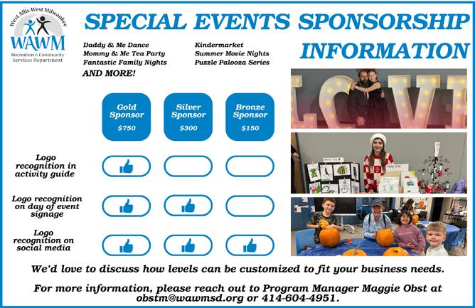 We invite you to advertise your business in our activity guide. Our activity guide is sent out three times per year to over 32,450 homes in the West Allis-West Milwaukee School District boundaries. We also reach many others via online access to our activity guide. Prices per issue are listed below: