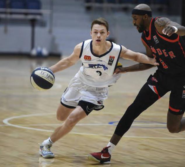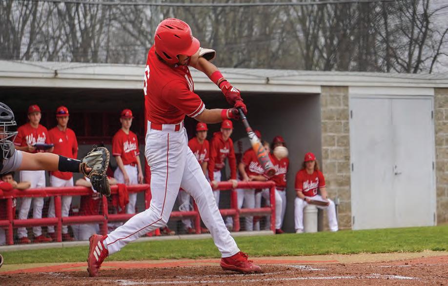 COURTESY OF THE BALLARAT COURIER Jack Davidson ’22 takes to the floor for Ballarat Miners in a practice match against Keilor on March 10, 2023. PHOTO BY JAKE PAIGE ’23 Michael Galanos ’25 rips a line drive towards left-center field during Wabash’s win against DePauw on April 4, 2023, at Goodrich Ballpark. PHOTO BY JAKE PAIGE ’23 Ben Henke ’26 (left) watches the pitch come in as he prepares for his at-bat against DePauw.