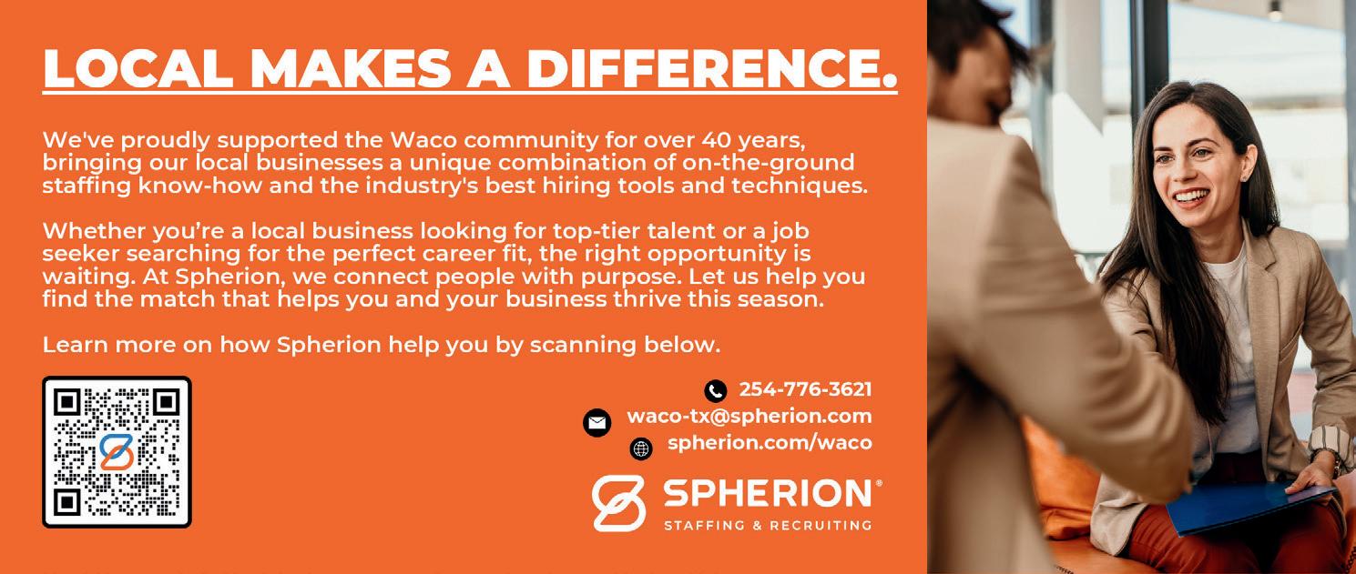 Greater Waco Business is published and distributed to Chamber members and economic development prospects. Digital copies are available online at WacoChamber.com. This publication is printed on FSC-certified paper.