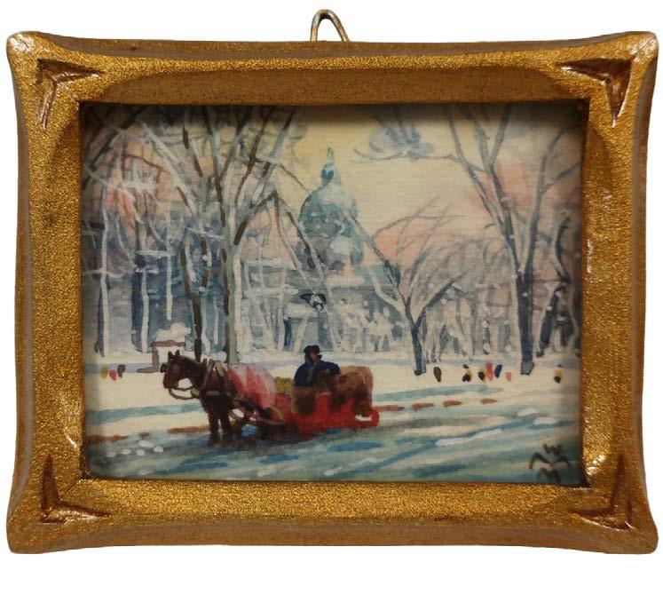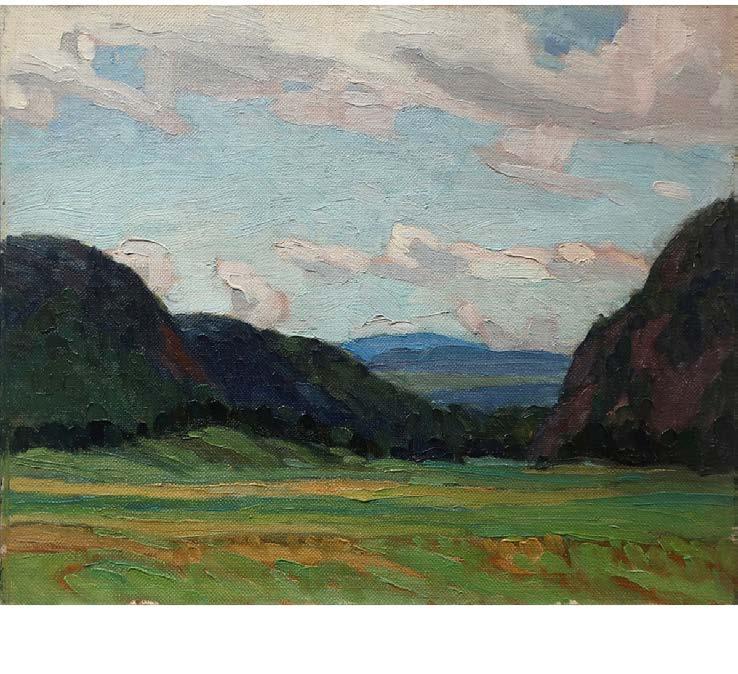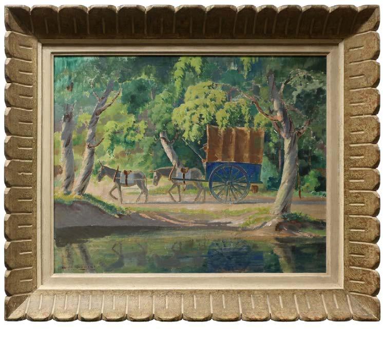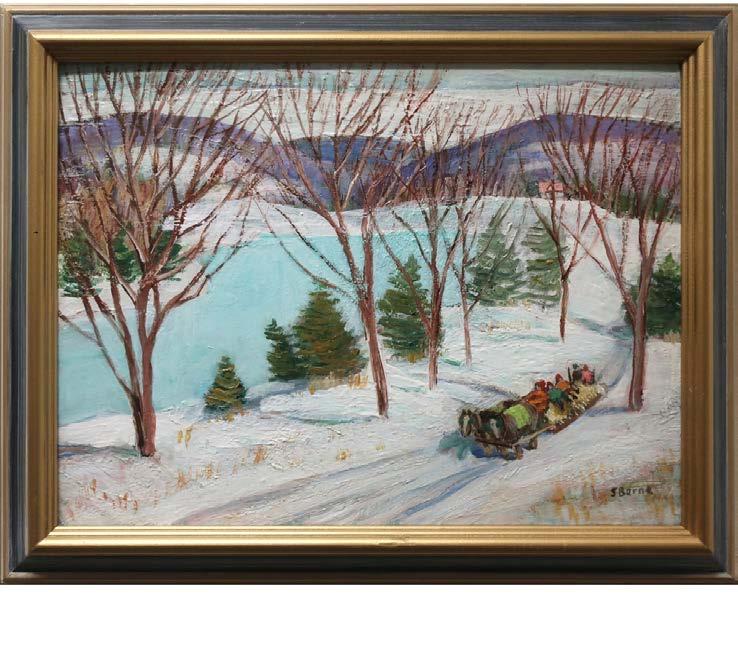 HAYRIDE IN THE LAURENTIANS, QUEBEC OIL ON MASONITE; SIGNED LOWER RIGHT; SIGNED AND TITLED VERSO 12 x 16 in — 30.5 x 40.6 cm