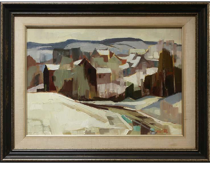 FROZEN LAKE, HUNTSVILLE, ONT. OIL ON MASONITE; SIGNED LOWER LEFT; SIGNED AND DATED 1977 VERSO; TITLED TO ARTIST LABEL - Inventory number F 423
