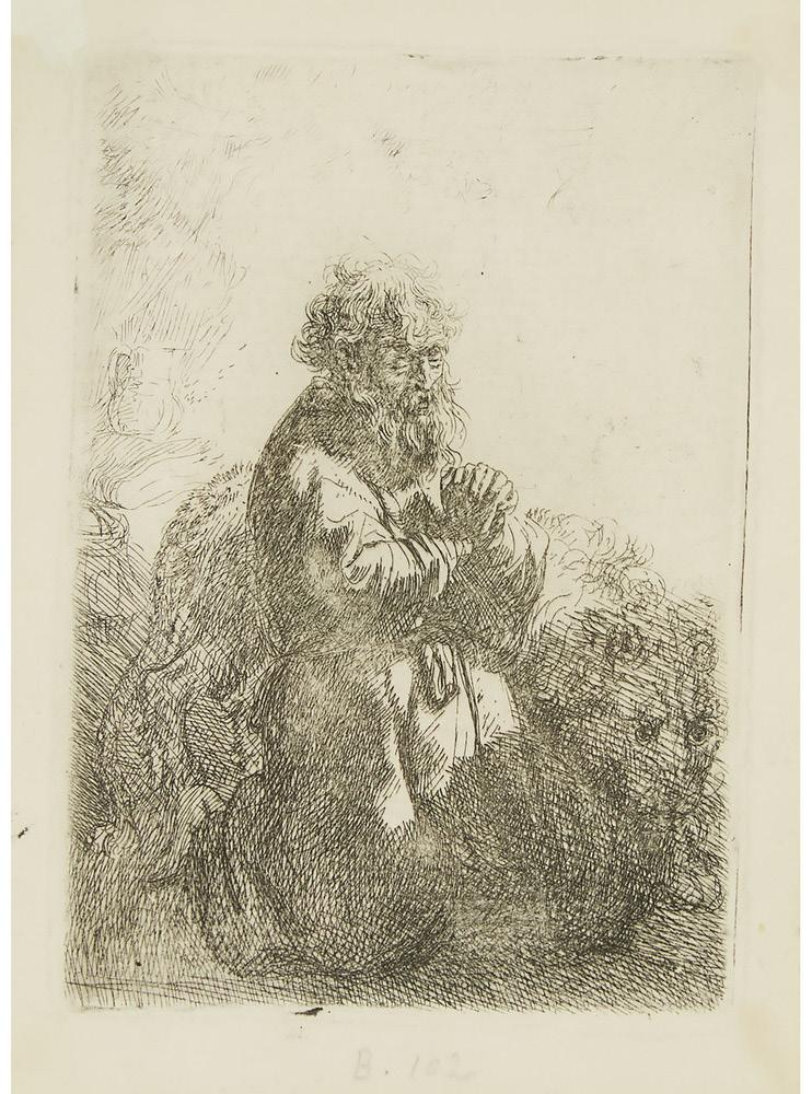 ST. JEROME, KNEELING IN PRAYER, LOOKING DOWN, CIRCA 1635 [H. (W&B), 102, B,35-H]