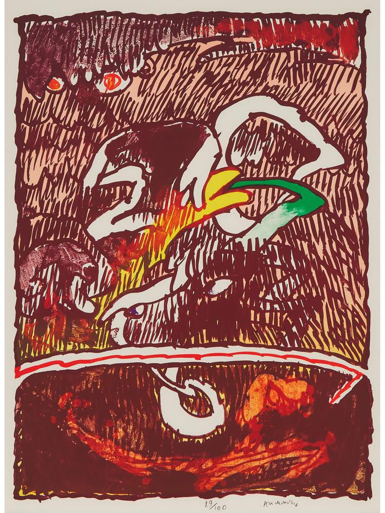 lithograph in colours on grey BFK Rives paper, the full sheet; signed, dated and numbered 19/120, there were also 20 artist’s proofs lettered from A to V; co-published by Counter Editions, Margate and Hamilton Press, Venice, blindstamp