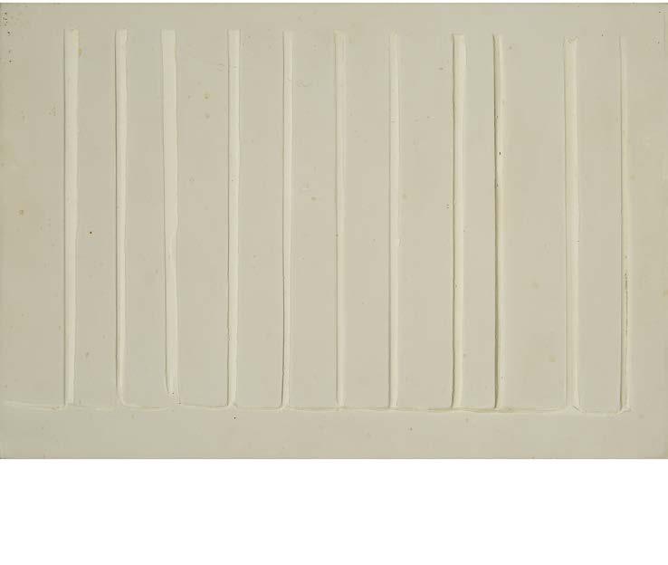 3RD COLORS, 1990 plaster compound, burlap, wood and steel signed, titled, dated and gallery label verso 35 x 35.25 x 3.875 in — 88.9 x 89.5 x 9.8 cm