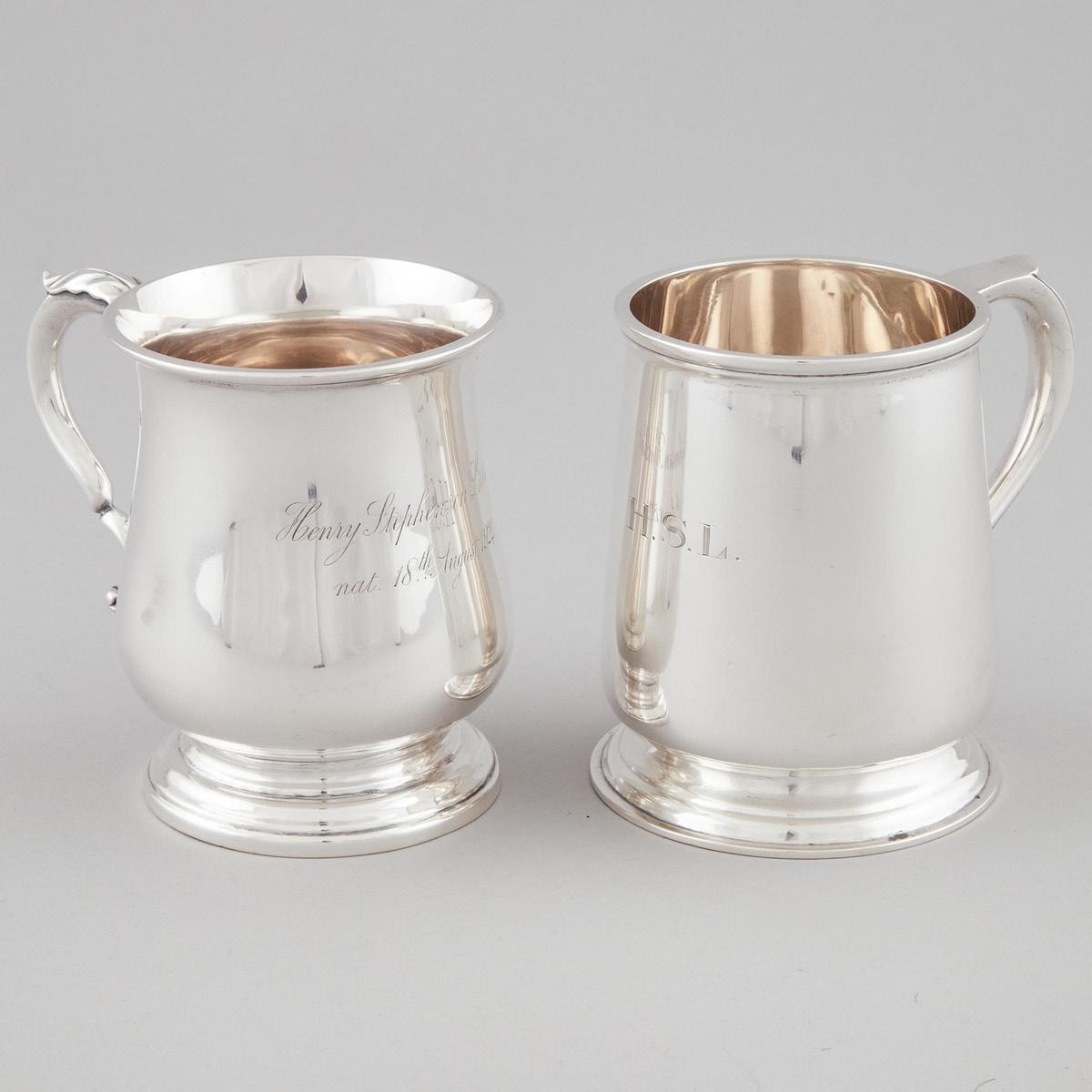 TWO ENGLISH SILVER MUGS, SIBRAY, HALL & CO. AND REID & SONS, SHEFFIELD, 1919/30