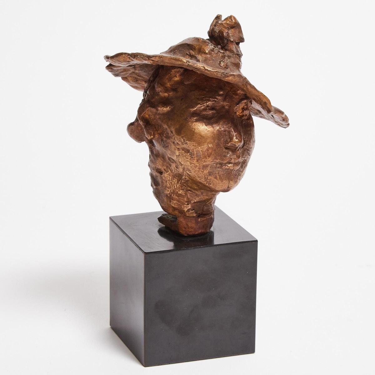 YOUNG WOMAN WITH HAT patinated bronze, signed, height 8.1 in — 20.5 cm