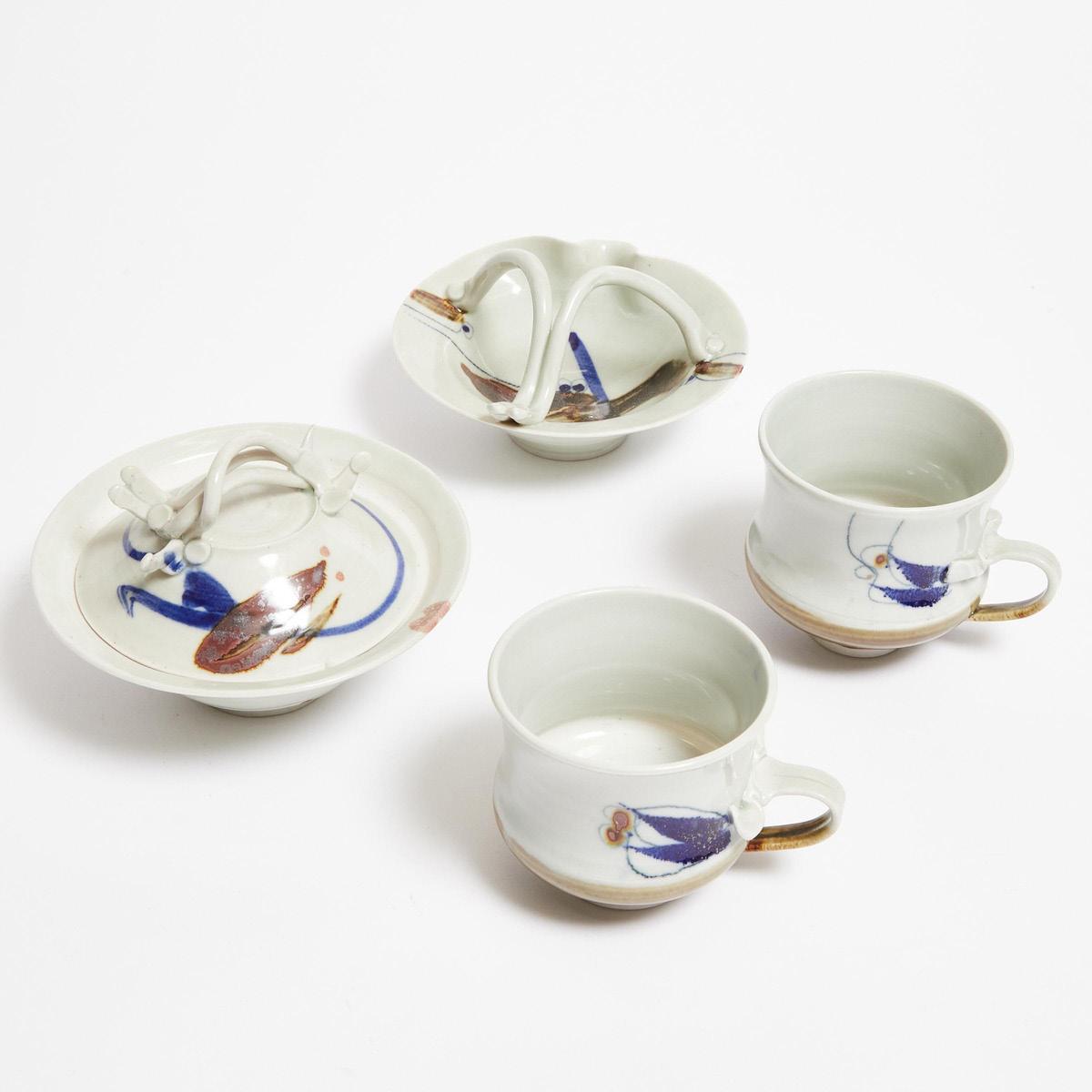 ANN MORTIMER (CANADIAN, B.1934), R.C.A., C.M., THREE CUPS AND SAUCERS, 1990S