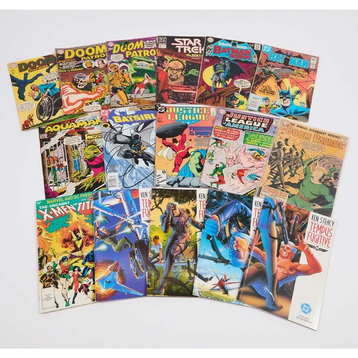 including Doom Patrol Nos. 87, 96, 110, and 117, Aquaman and Aqualad No.3, Batman and Robin Nos. 348 and 382, Justice League of America No. 37, Justice League No. 6, Star Trek No. 2, X-Men and Titans No. 1, and Tempus Fugitive Nos. 1, 2, 3 and 4, 10.25 x 7 in — 26 x 17.8 cm