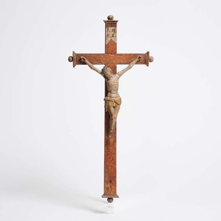 carved wood with natural pigments, includes stand, height 15.5 in — 39.4 cm