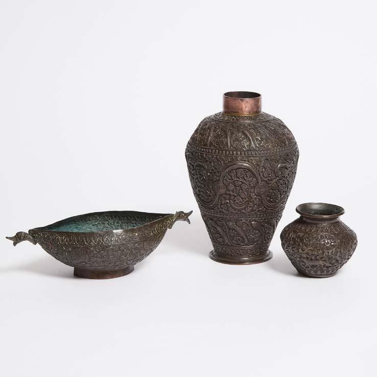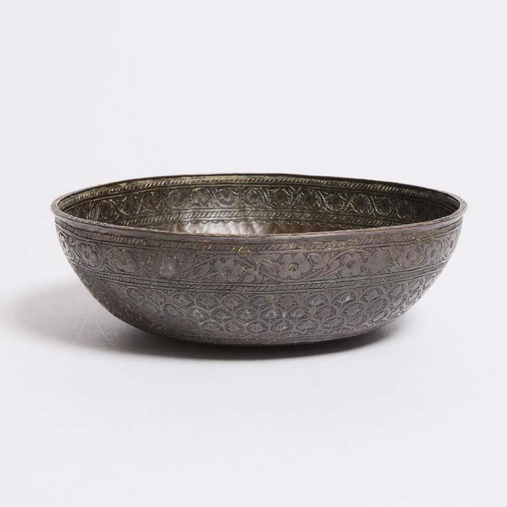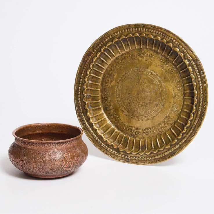 ACHAEMENID COPPER ALLOY LOTIFORM PHIALE MESOMPHALOS (LIBATION BOWL), 4TH CENTURY BC central boss with radiating ‘petals’, diameter 6.75 in — 17.1 cm