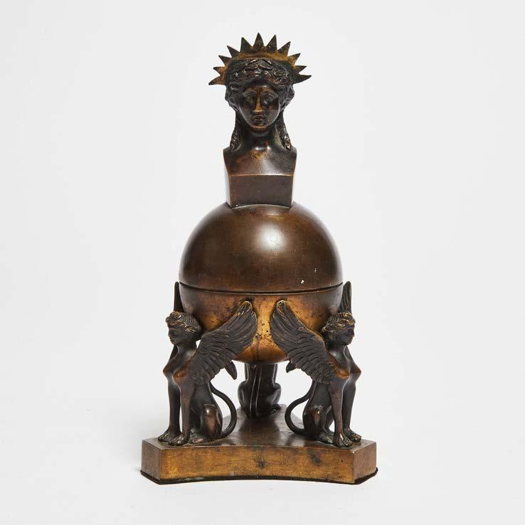 now mounted on oak stand, bronze height 4.75 in — 12.1 cm; overall height 8 in — 20.3 cm