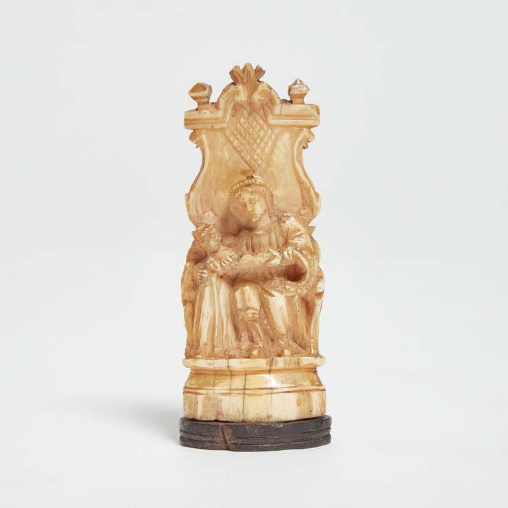 INDO-PORTUGUESE IVORY GROUP OF ST. ANNE IN MAJESTY TEACHING OUR LADY TO READ, 17TH CENTURY on an ebony base, height 3.9 in — 10 cm