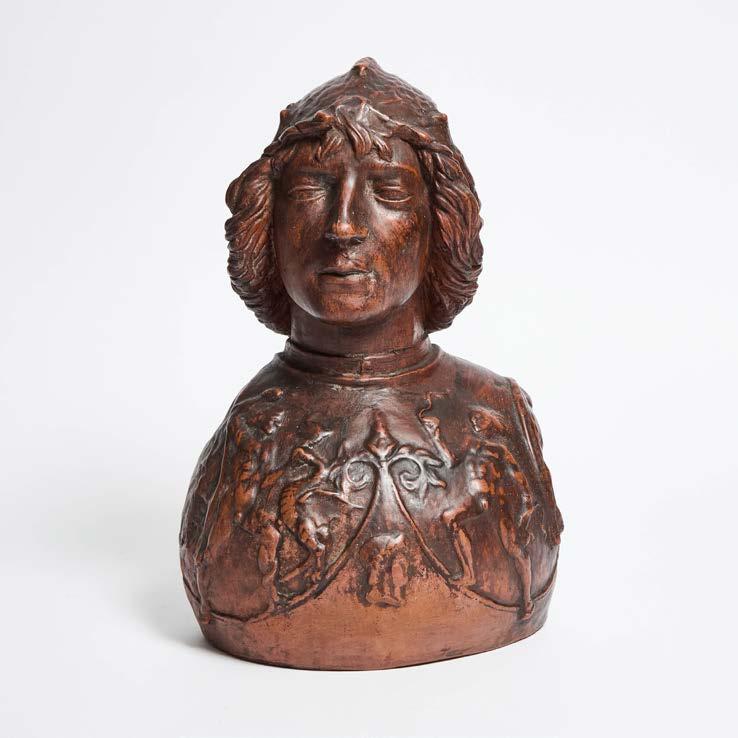 FLORENTINE TERRA COTTA BUST OF A YOUNG WARRIOR, AFTER ANTONIO DEL POLLAIUOLO (143?-1498), 19TH CENTURY