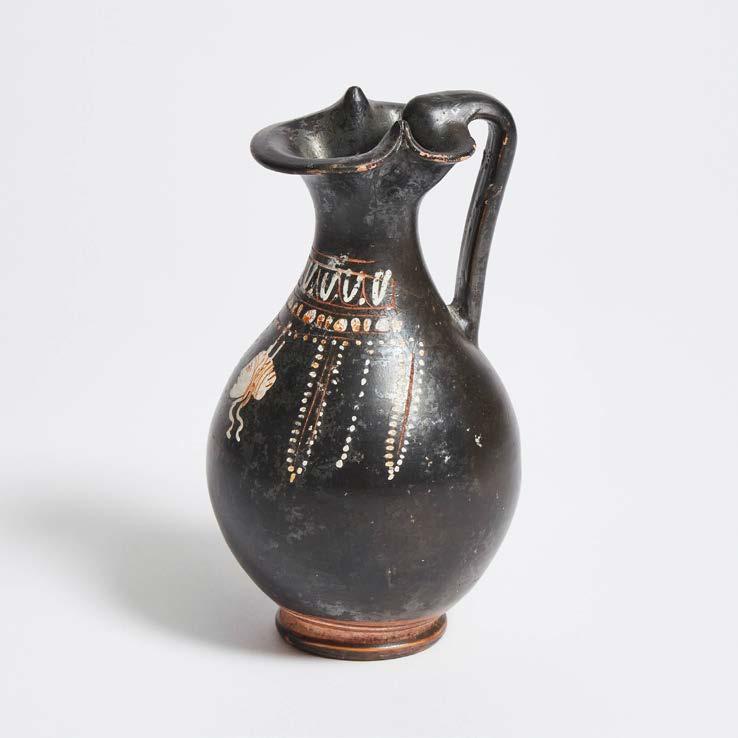 APULIAN GNATHIAN WARE POTTERY TREFOIL OINOCHOE, WORKSHOP OF THE KONNAKIS PAINTER, 375-350 BC
