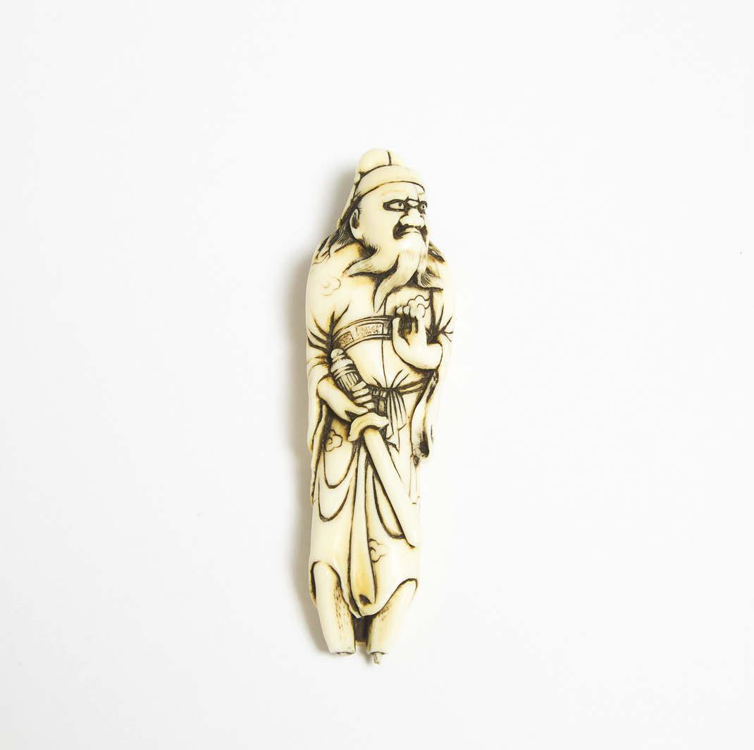 AN IVORY NETSUKE OF GAMA SENNIN WITH TOAD CIRCA