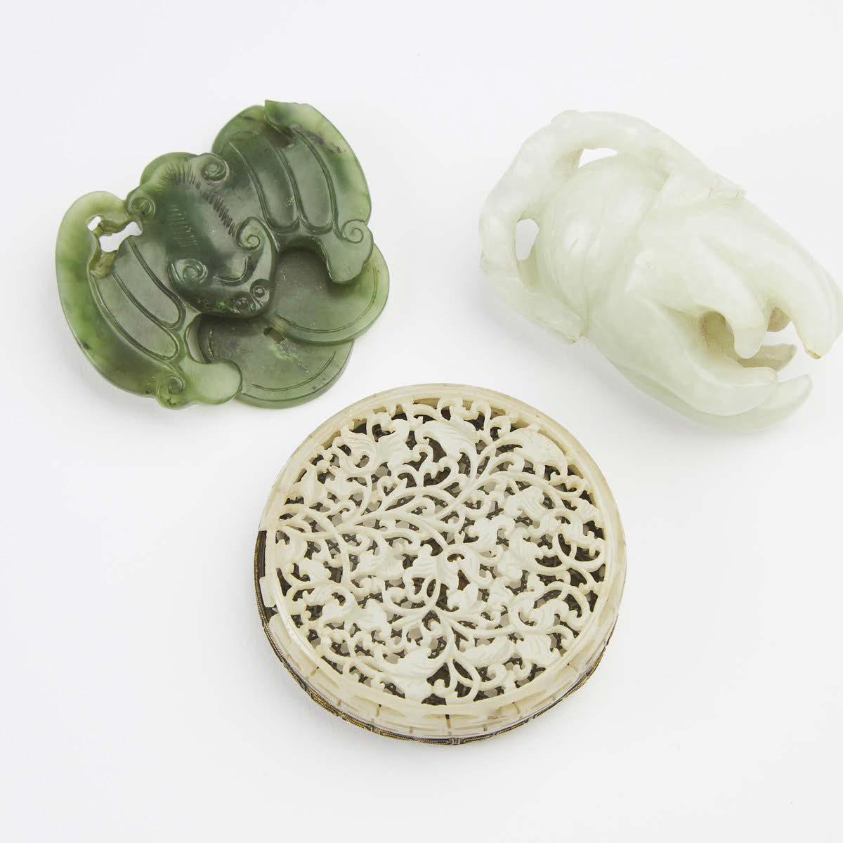 A WHITE JADE RETICULATED ‘DEER AND BAT’ PLAQUE MING DYNASTY -