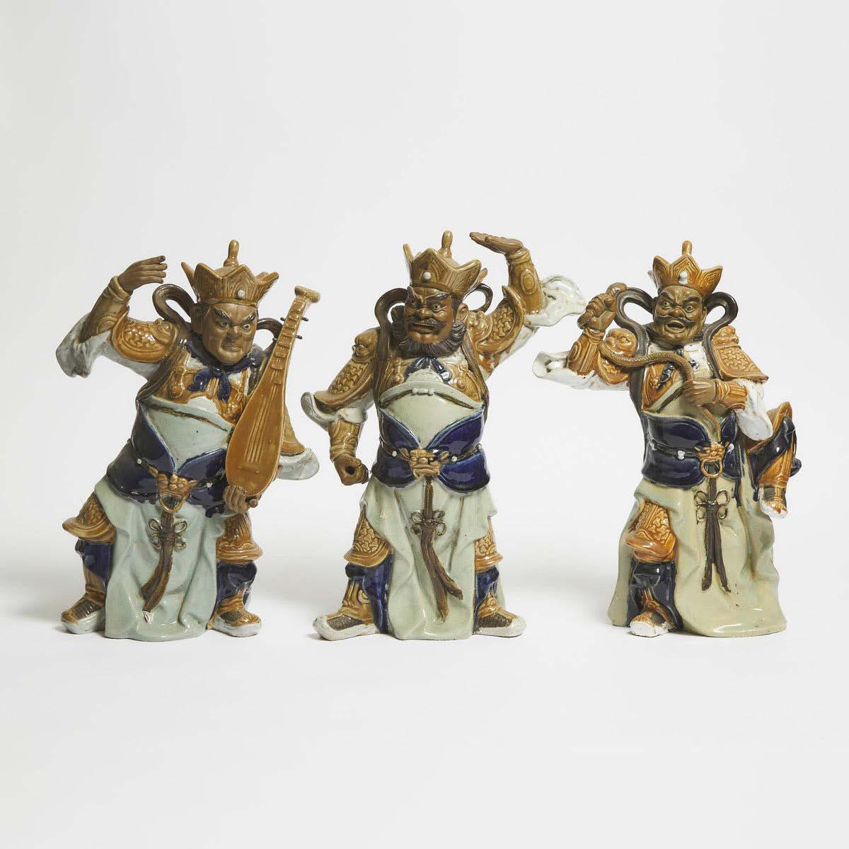 日本 江户时期 京都派 牙雕钟馗擒鬼跟付 The exhalted scholar dressed in Chinese military garb and cloud-pa erned robes, the himetoshi formed through his sleeve height 3.1 in — 8 cm