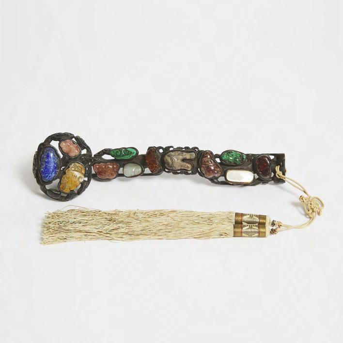 A JADE AND SEMI-PRECIOUS STONE-INLAID ZITAN RUYI SCEPTRE, QING DYNASTY