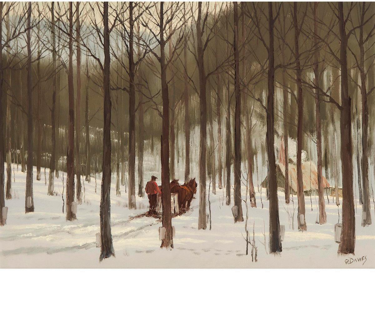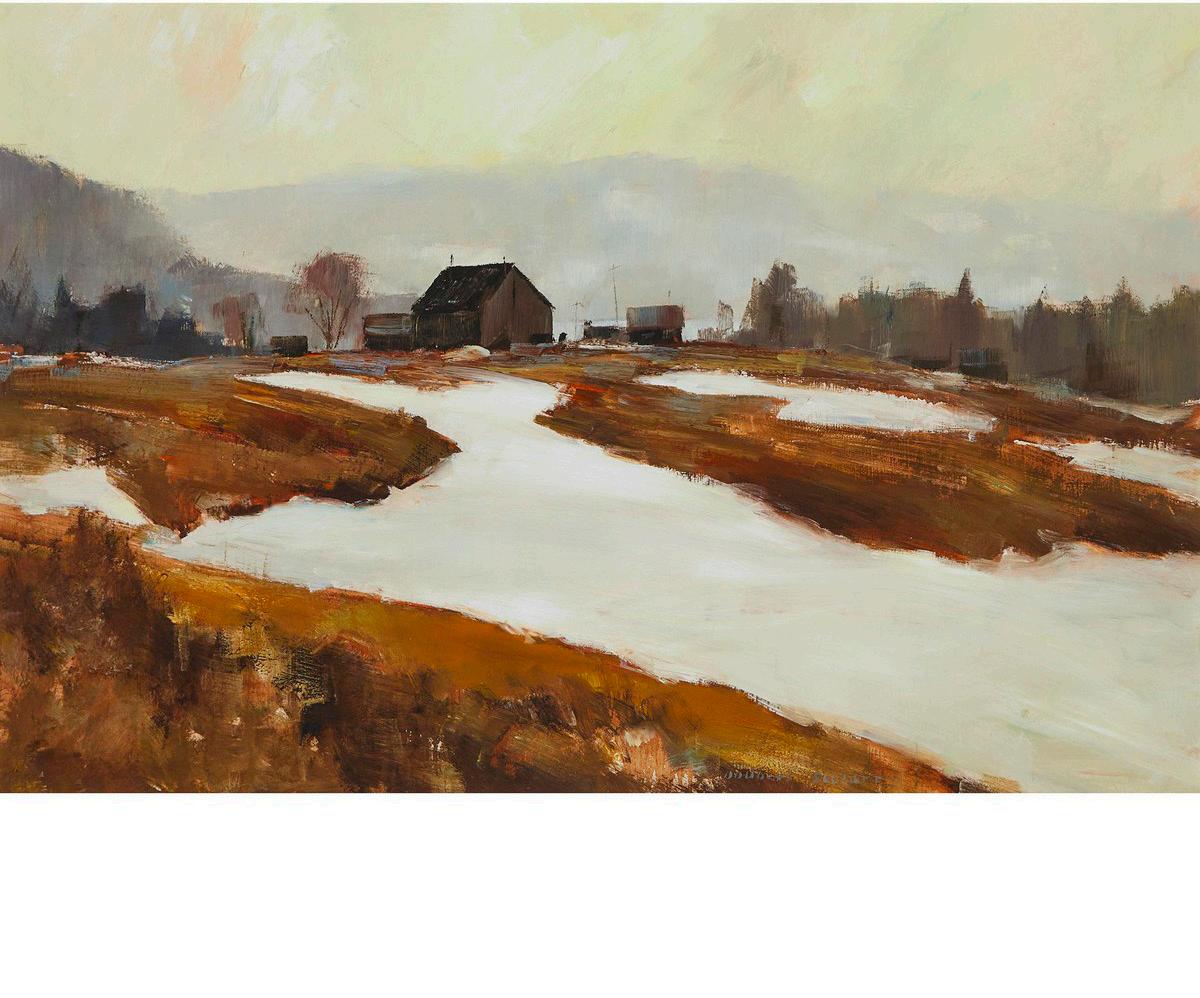 NORTHLAND IN MARCH oil on hardboard titled to artist’s label verso 24 x 36 in — 61 x 91.4 cm