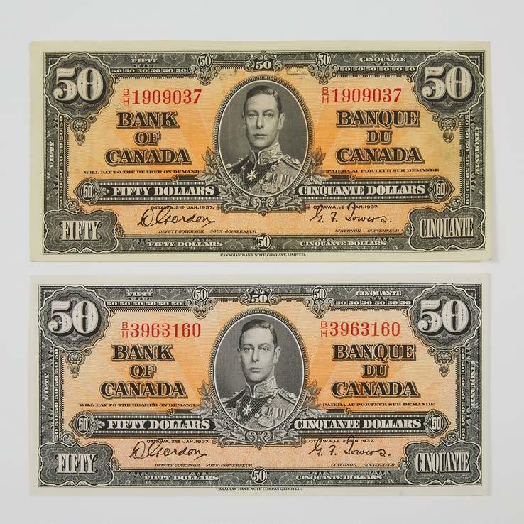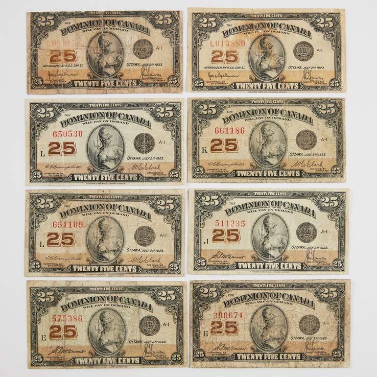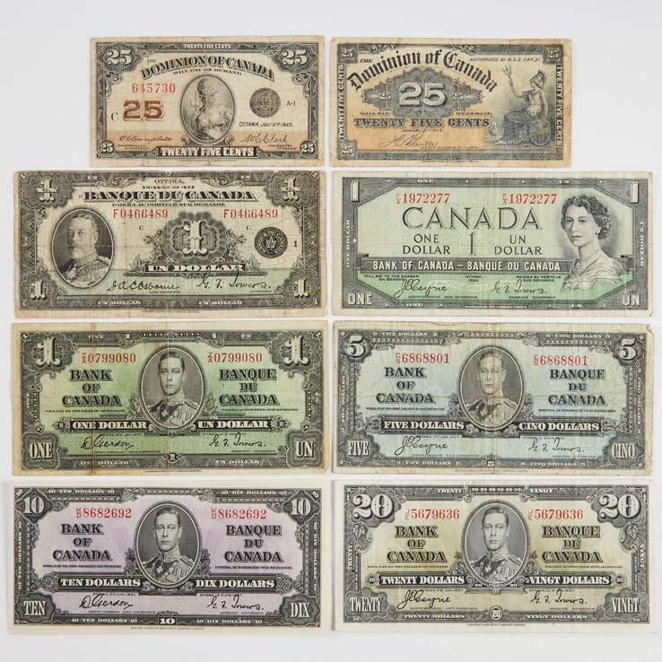 SET OF EIGHT BANK OF CANADA 1937 SPECIMEN BANK NOTES