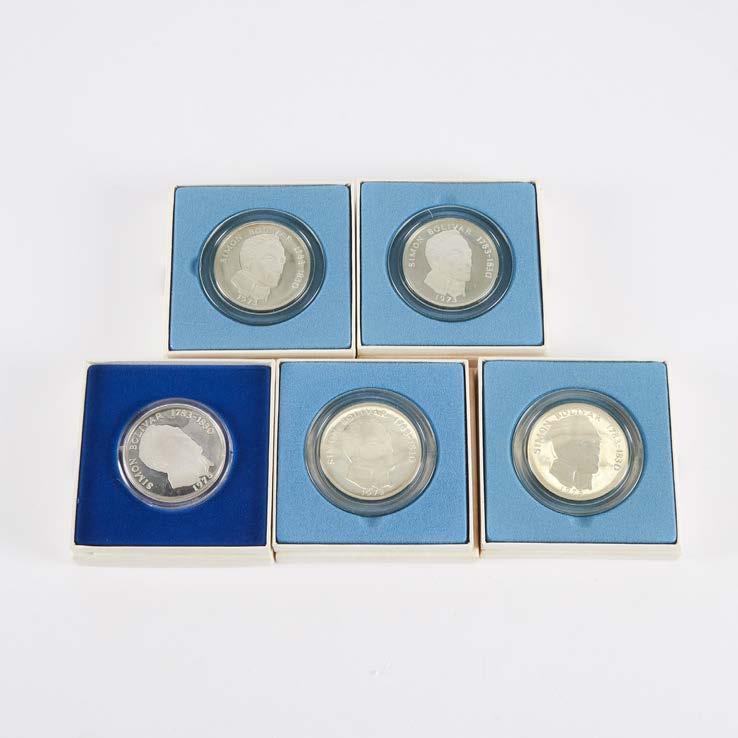 5 REPUBLIC OF PANAMA 20 BALBOAS STERLING SILVER COINS