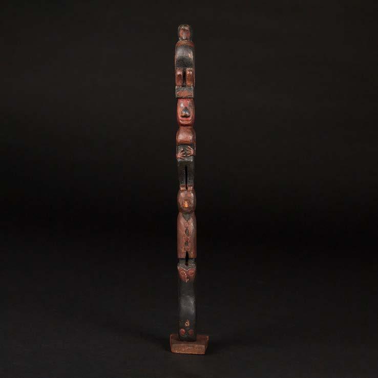 LARGE MODEL TOTEM POLE wood, paint, steel nail, leather