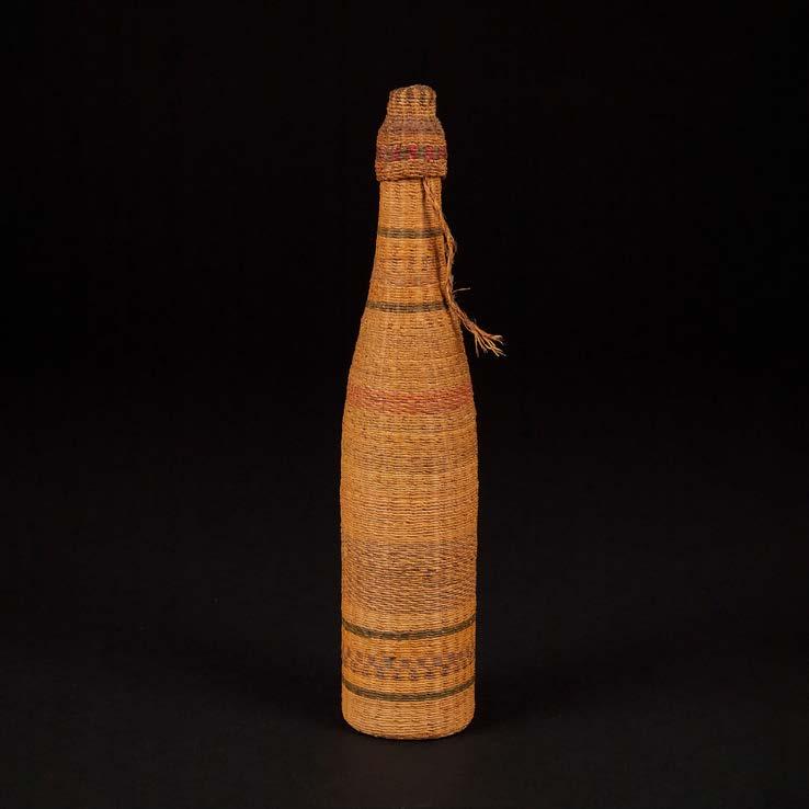 GRASS-WRAPPED BOTTLE, CA. 1880S glass, grass height 14.25 in — 36.2 cm, diameter 3 in — 7.6 cm;