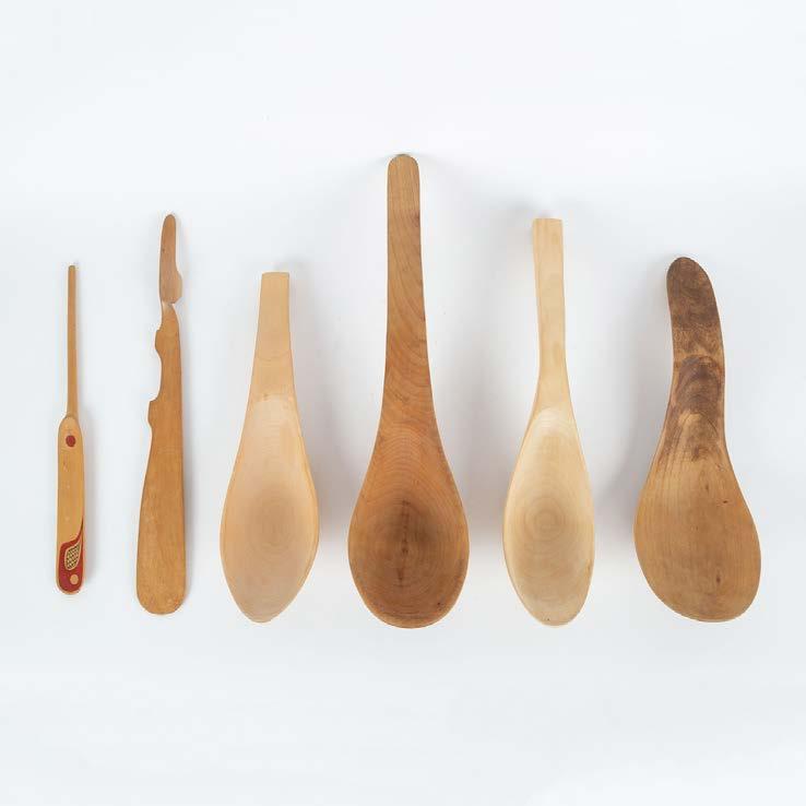 SIX NORTHWEST COAST WOODEN SPOONS largestwood 15 ins x 3.5 ins x 4 ins; 38.1 cms x 8.9 cms x 10.2 cms