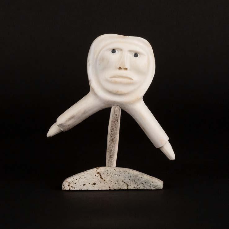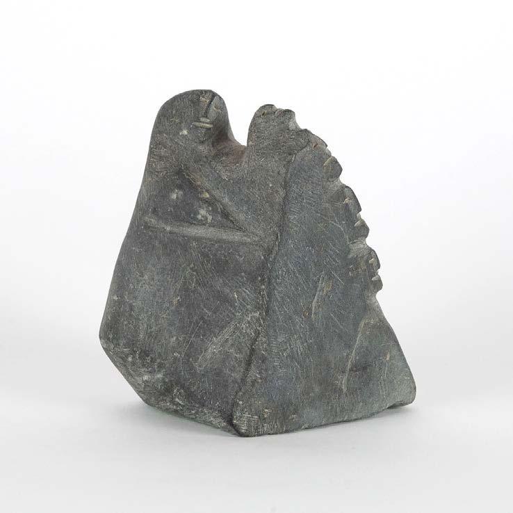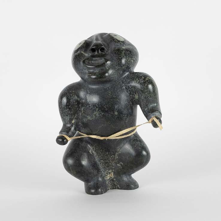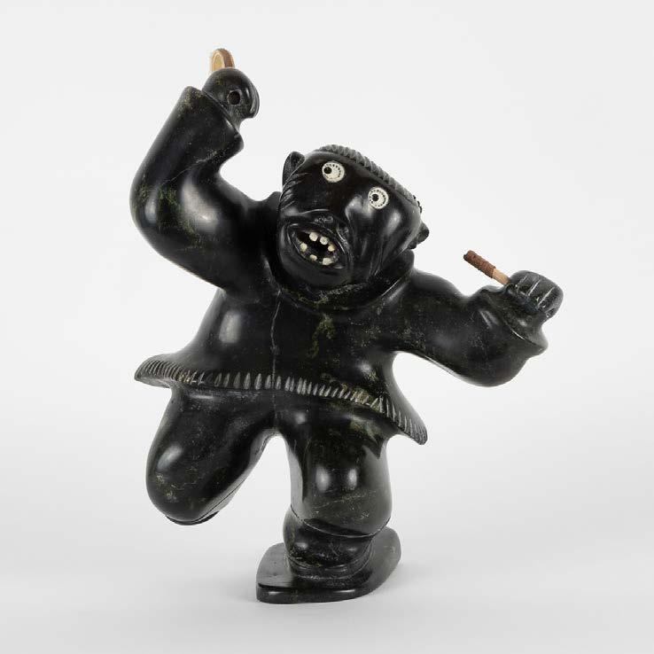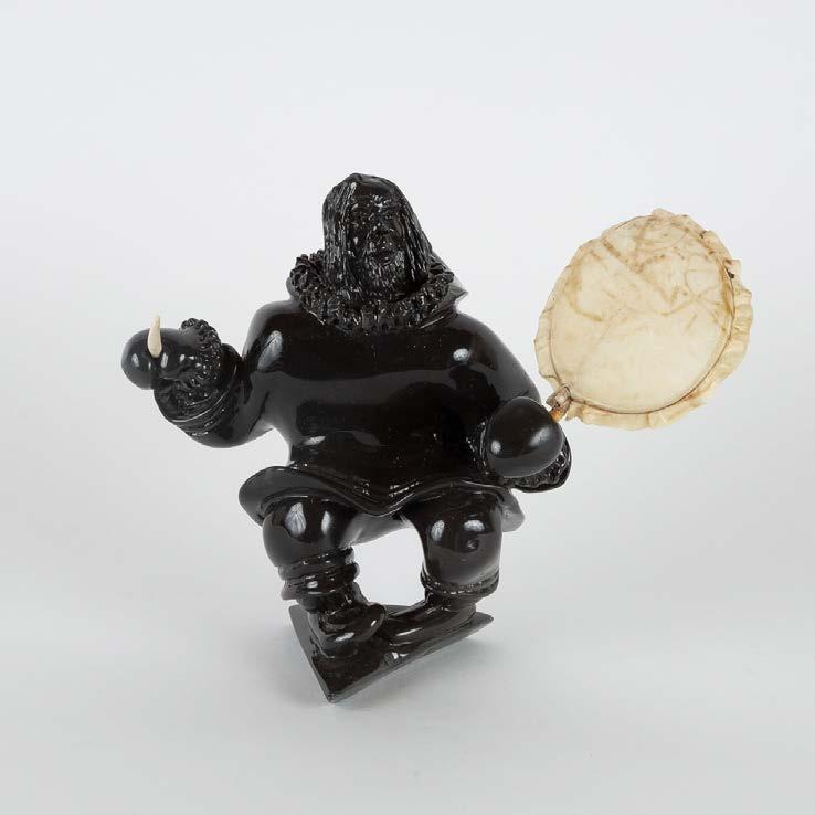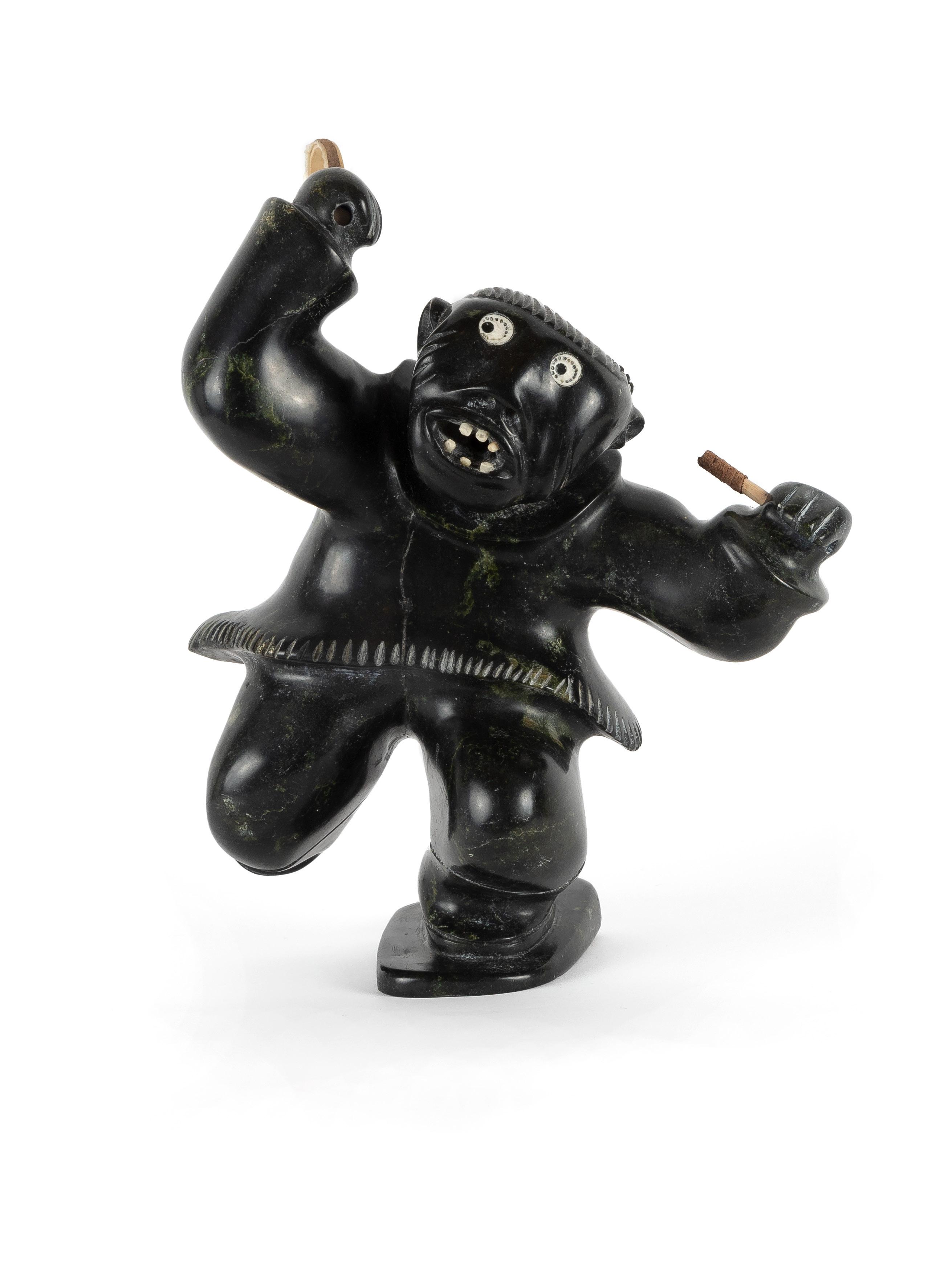 DRUM DANCER stone, antler, sinew, leather; signed in 15syllabicsx12x7 in — 38.1 x 30.5 x 17.8 cm