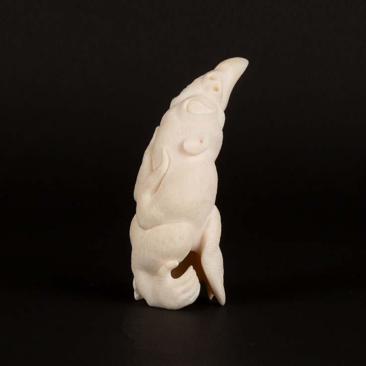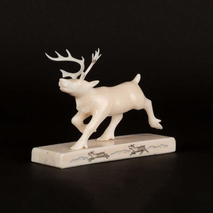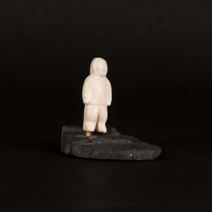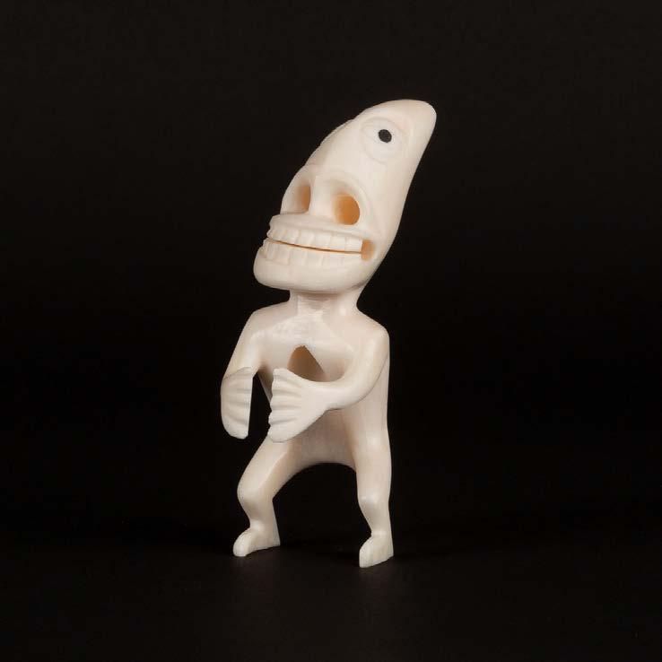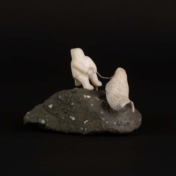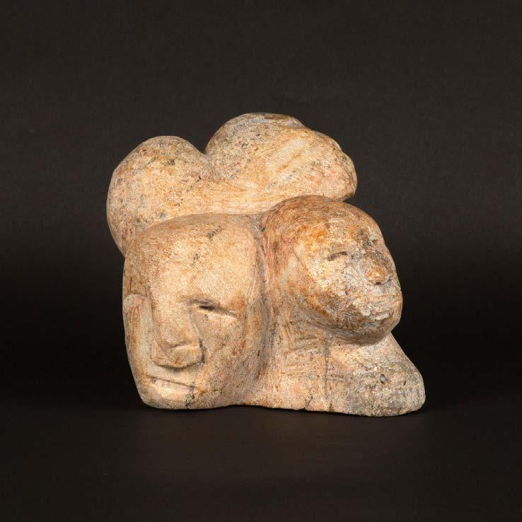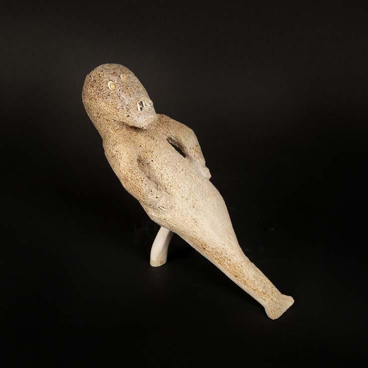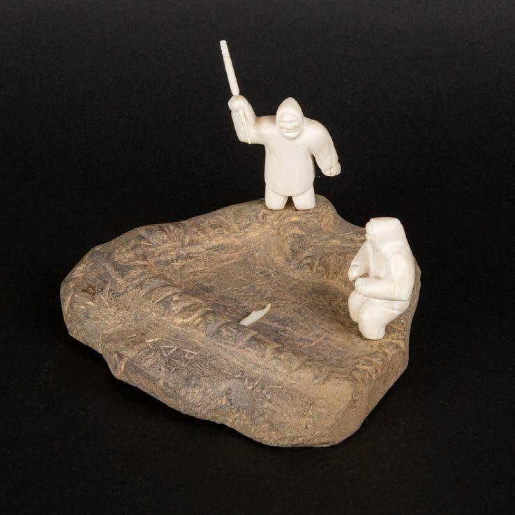 DRUM DANCER stone, antler, sinew, leather; signed in 15syllabicsx12x7 in — 38.1 x 30.5 x 17.8 cm